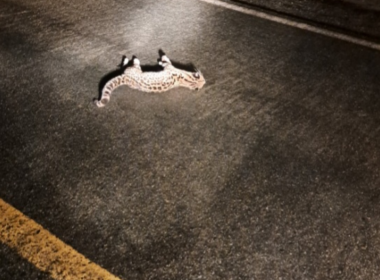 Uma jaguatirica morreu atropelada na Rodovia BR-420, trecho da Curva do Lixão, entre a BR-116 e a sede…